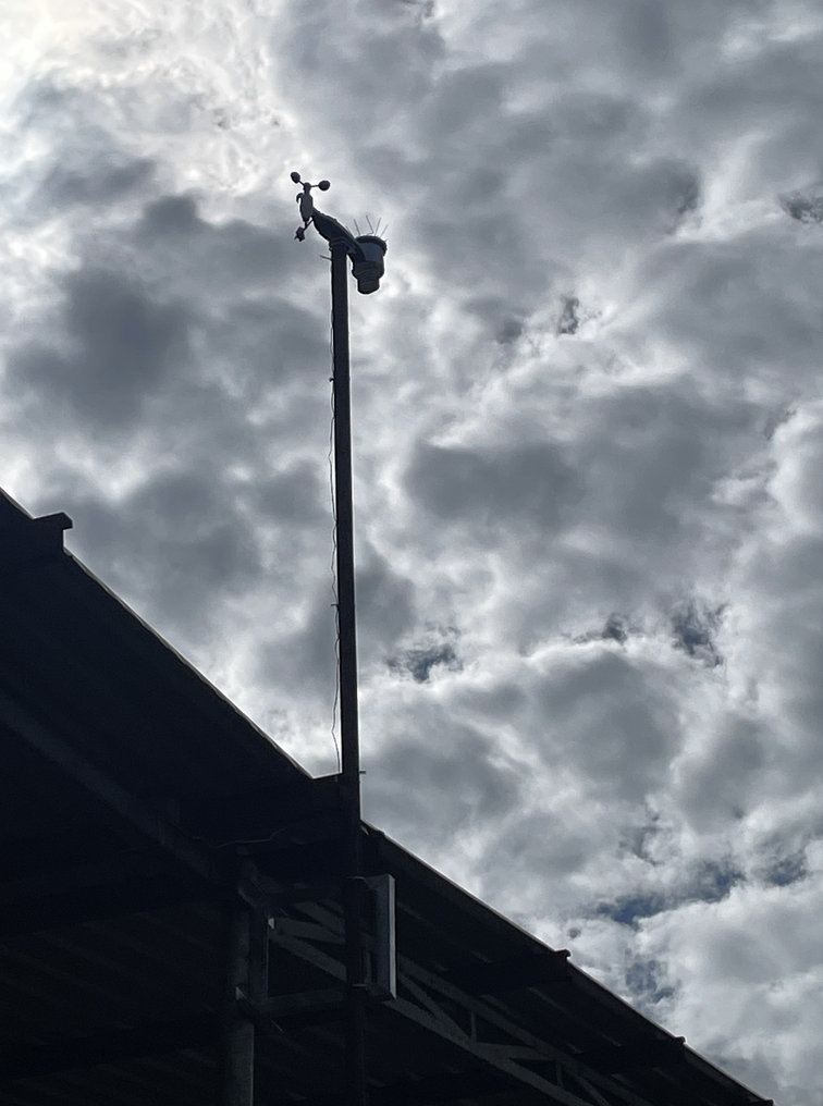 - The mast is much lower than the recommended height, and the temperature measurements are certainly affected by the dark-coloured roof.